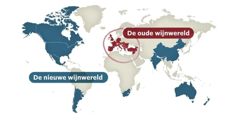 Kort door de bocht verwijst Oude Wereld naar de traditionele wijnlanden in Europa en Nieuwe Wereld naar alle landen daarbuiten. Bij de Oude Wereld horen landen als Frankrijk en Italië en bij de Nieuwe Wereld onder andere Australië, Chili en Zuid-Afrika.