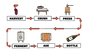 Druiven zijn geplukt, geperst en ondergaan daarna een alcoholische vergisting. Hierbij suikers in het druivensap omgezet in alcohol. zo is het druivensap wijn geworden. Tijdens dit proces ontstaan smaak, geur en karakter. De wijnmaker heeft veel kennis en ervaring nodig om per stap in het bereidingsproces de juiste keuze te maken. deze keuzes zijn bepalend voor het uiteindelijke product en de uiteindelijke smaak en stijl van de wijnen.